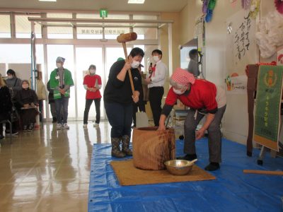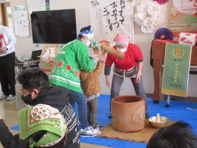 ピアサポートあい山﨑所長の挨拶に続き、会場の皆でお餅つきをしました。