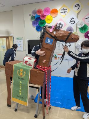 事前に馬券が配布され、参加者は自分が予想した馬が勝つか真剣に応援しました!