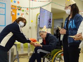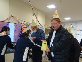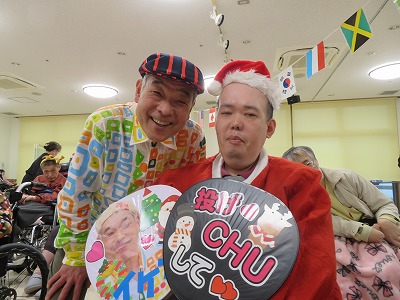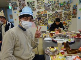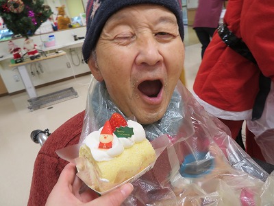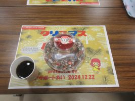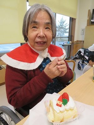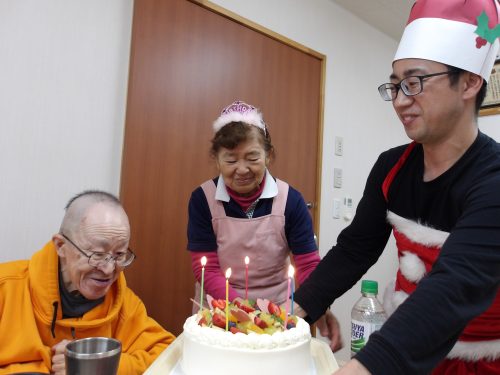 また、毎年恒例のクリスマスホールケーキもあり、12月生まれの方のお祝いも行いました。