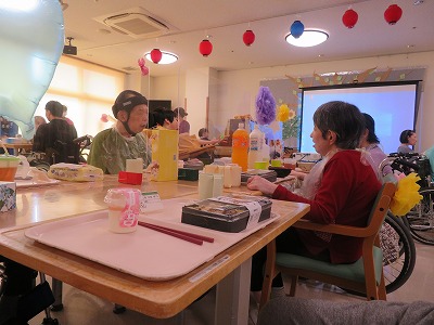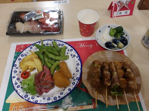 お寿司や焼き鳥、ローストビーフ等々、普段と違う豪華な夕食を皆さん楽しみました♪