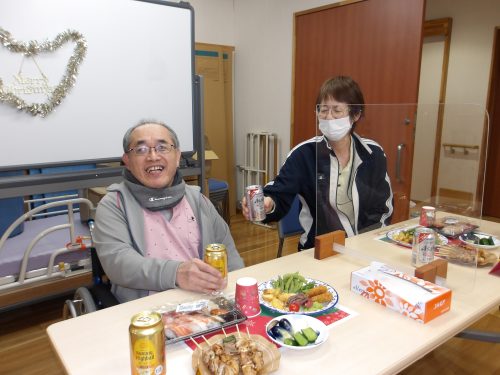 また、各自飲みたい飲み物も提供し、泡が出るノンアルコールビールやノンアルコールの赤ワインなどを嗜まれて、普段と違う豪華な食事を楽しまれていました♪