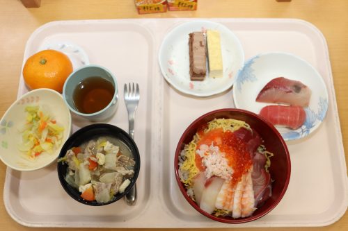 今年は、海鮮丼やカットケーキに加えて、ご希望が多かったお寿司を一人2貫ずつご用意いたしました!