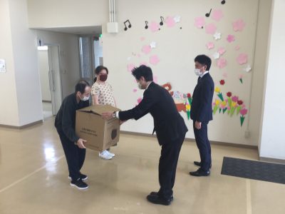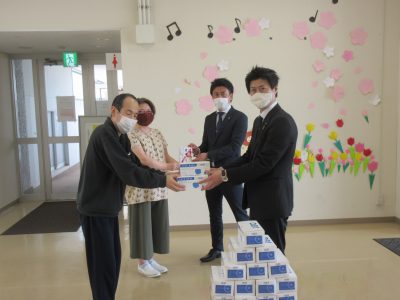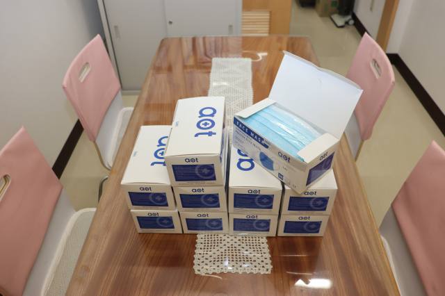 また、勝星産業株式会社 代表取締役社長 門口 克比古様からは、品薄でなかなか手に入らないマスクを寄附していただきました。利用者さんが安心・安全で健康に過ごしていただけるよう、使わせていただきます。