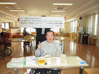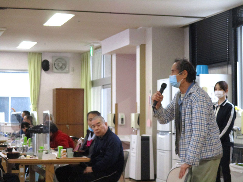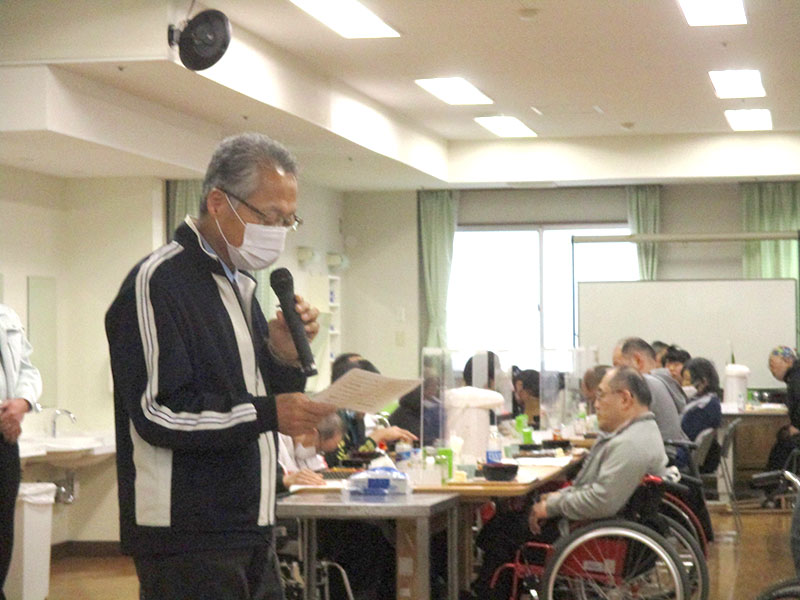 施設長の1年の労をねぎらう挨拶のあと利用者代表による乾杯の発声でスタートしました!