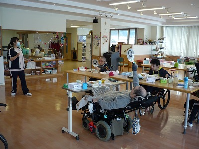 感染症対策として、入所・通所の利用者さんが分かれて行いました!