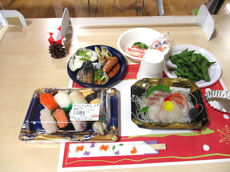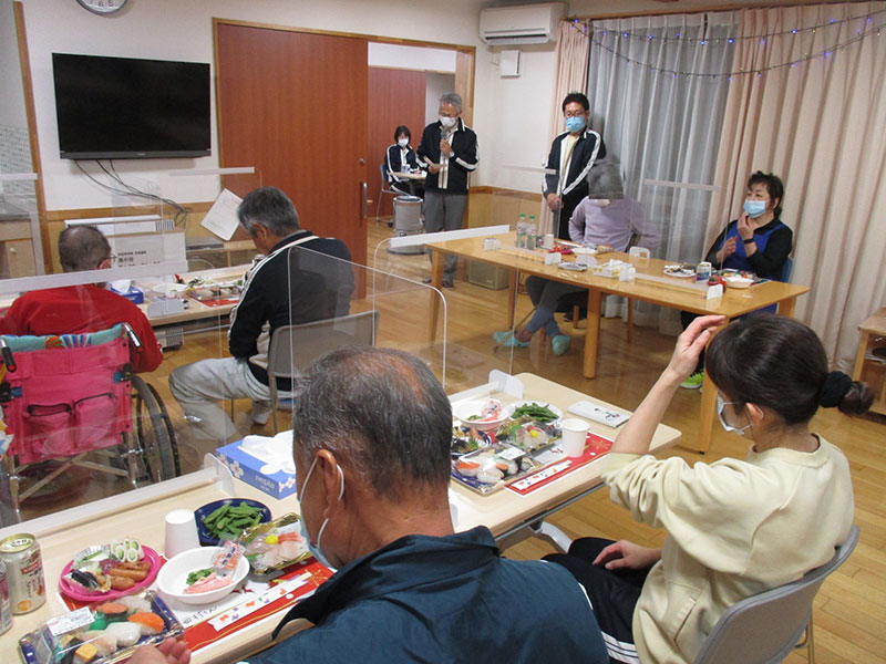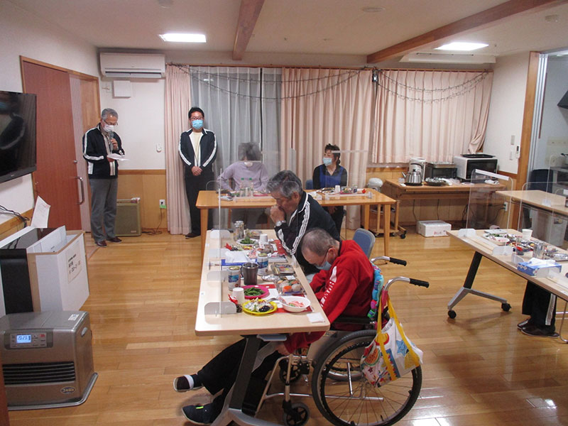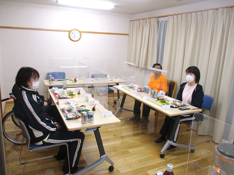 小規模なグループホームですので、密集を避けたうえで関連する職員も会食に参加させていただきました。会食する場所を3室に分散したことで感染リスクを少なくしました。