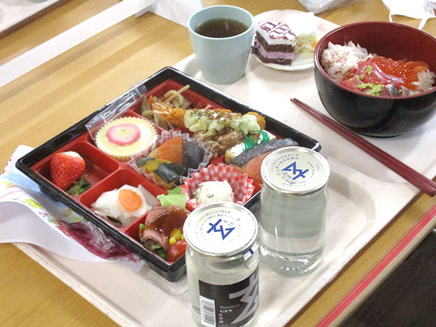 海鮮丼と九枡(枠)におかずが入った弁当とデザートをいただきました!